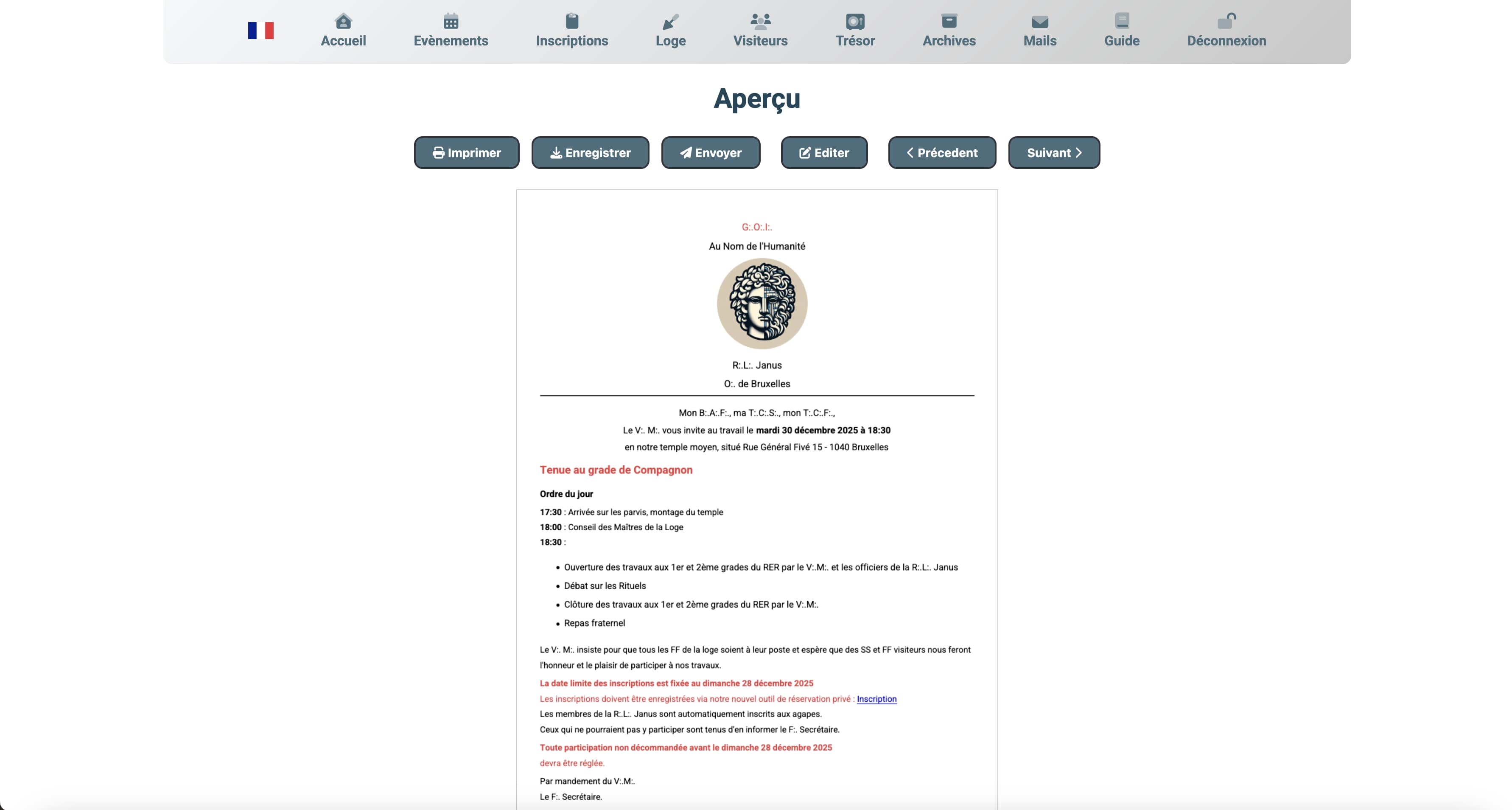 La fonction de secrétaire dans une loge maçonnique implique de nombreuses responsabilités administratives. Janus simplifie ces tâches grâce à des outils dédiés :